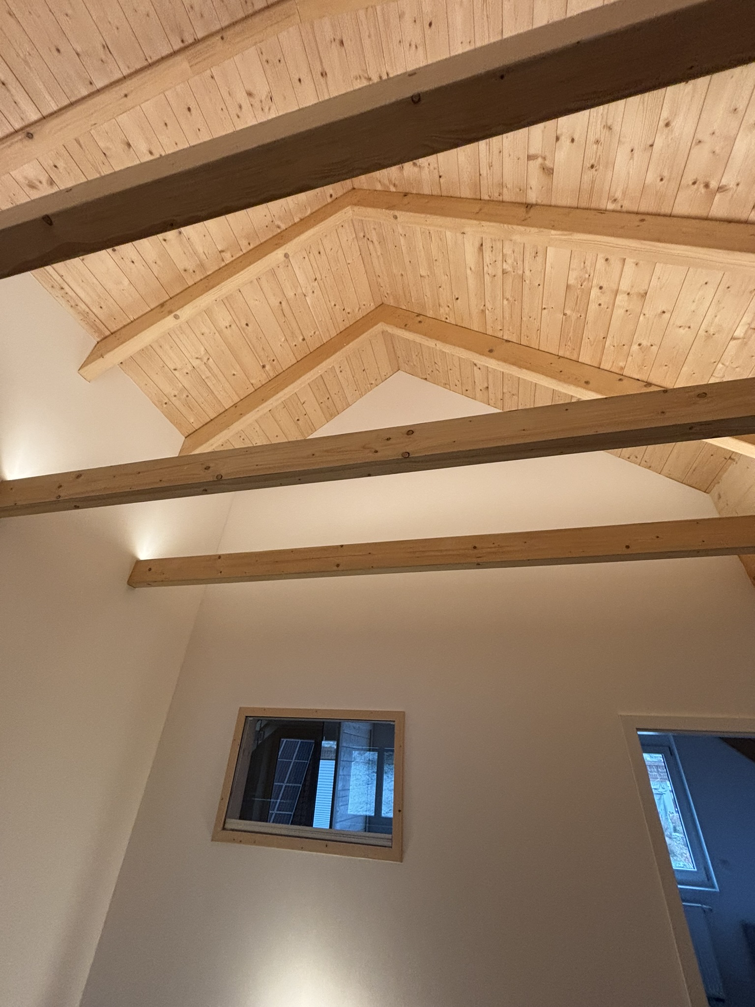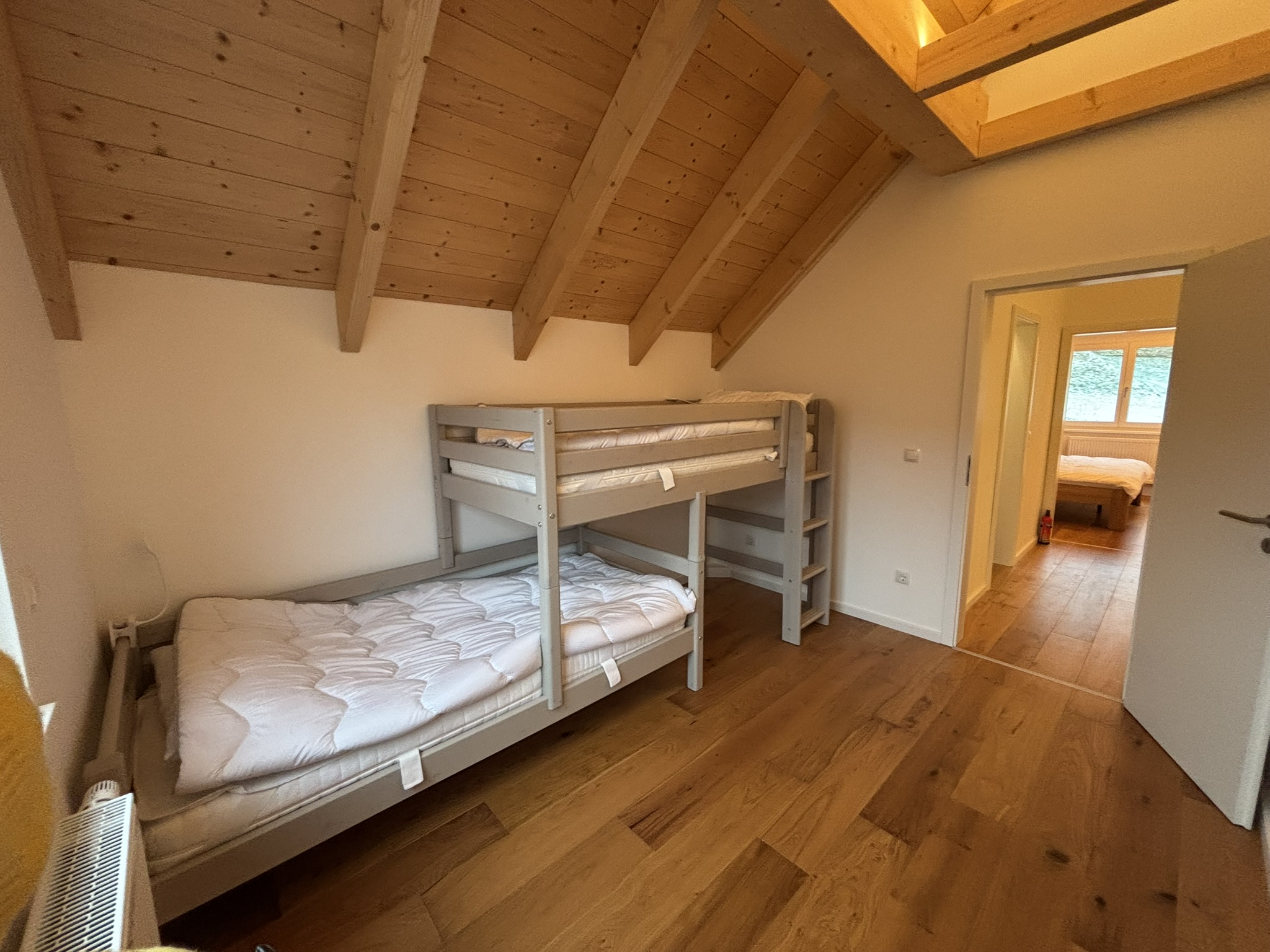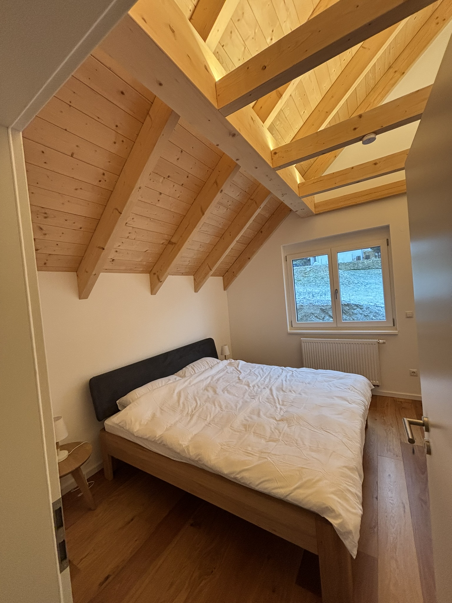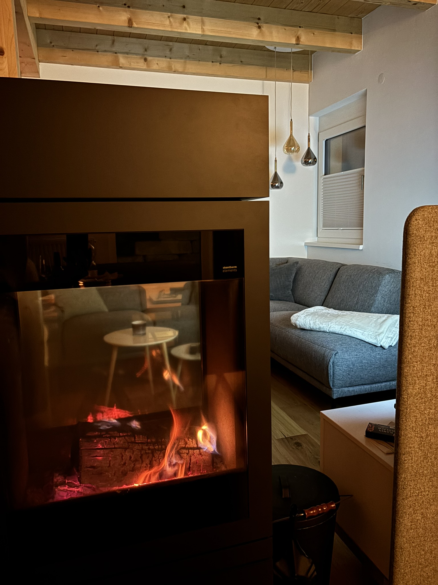 Unser Haus besticht durch eine offene Holzbauweise, die eine warme und einladende Atmosphäre schafft. Der gemütliche Holzofen im Wohnzimmer lädt zu entspannenden Abenden ein, während die Sauna Ihnen wohltuende Erholung bietet.