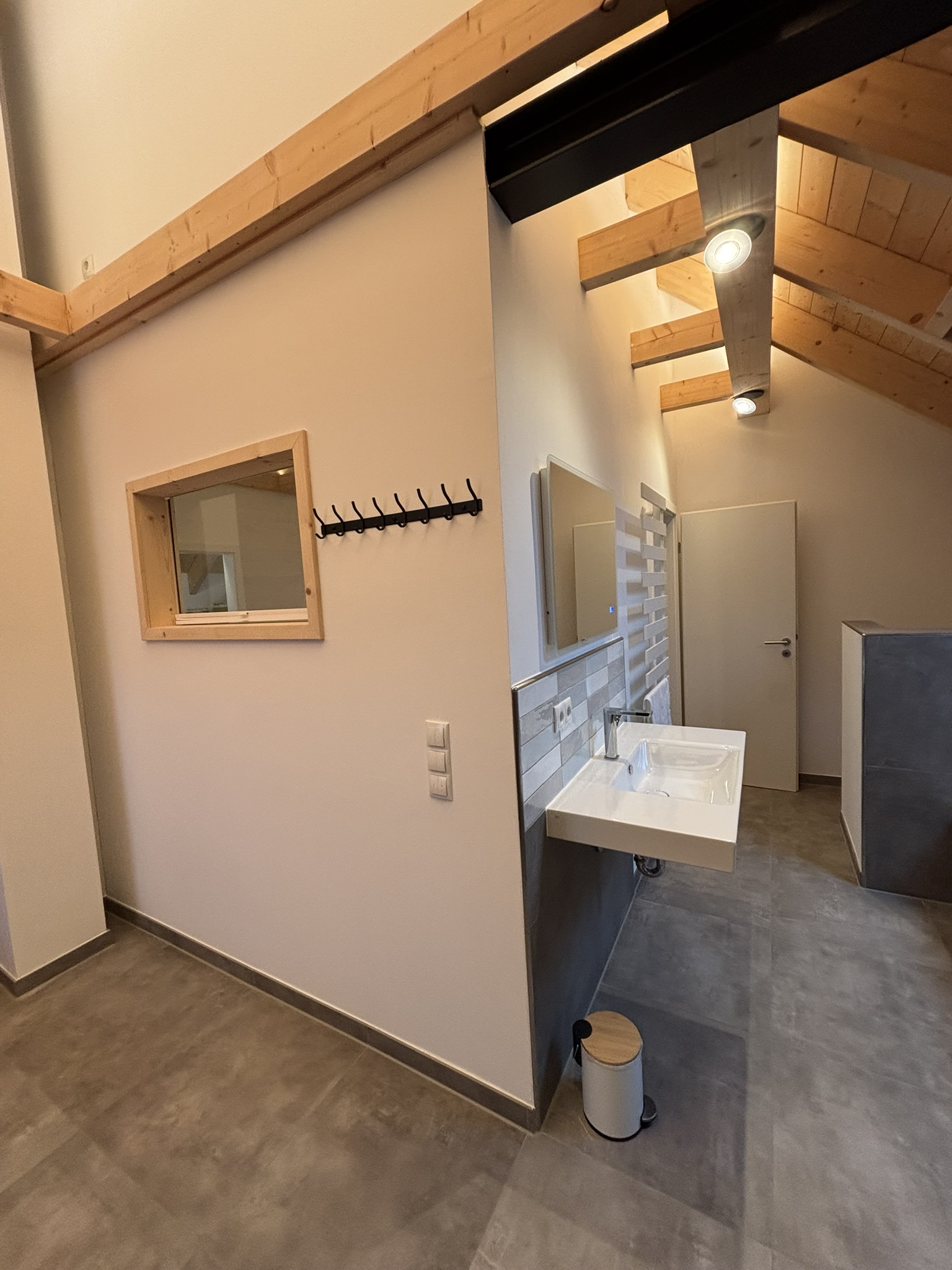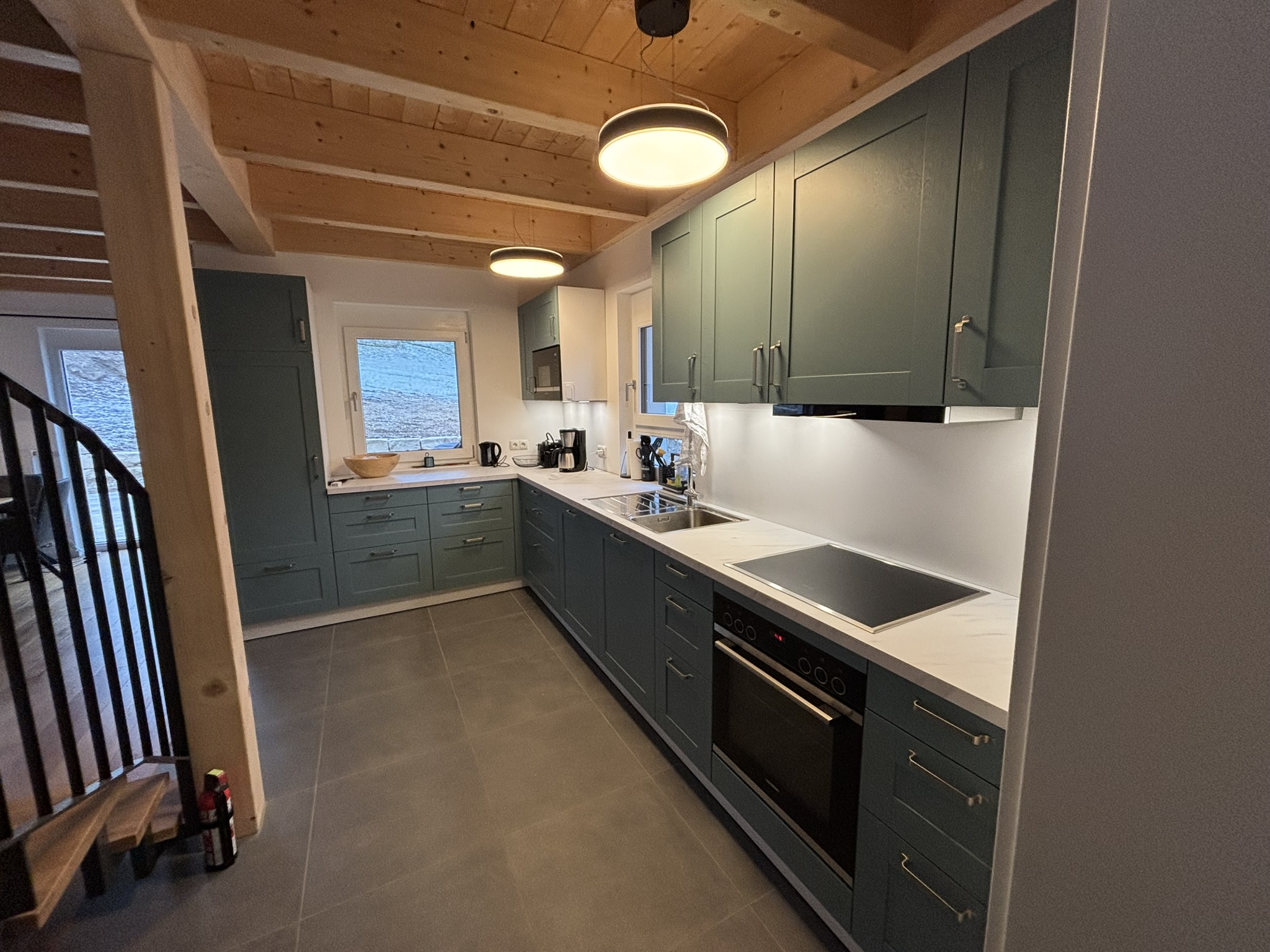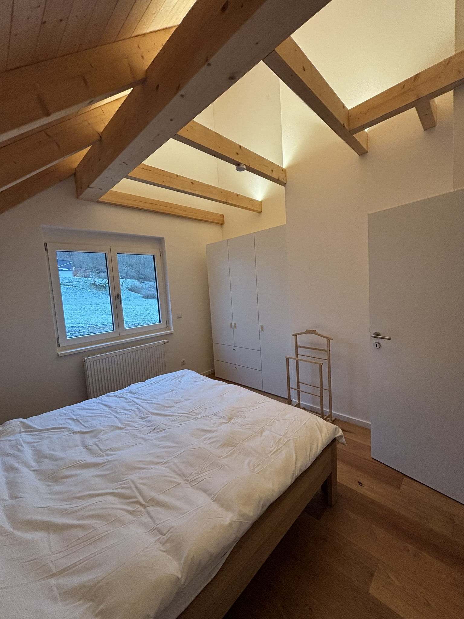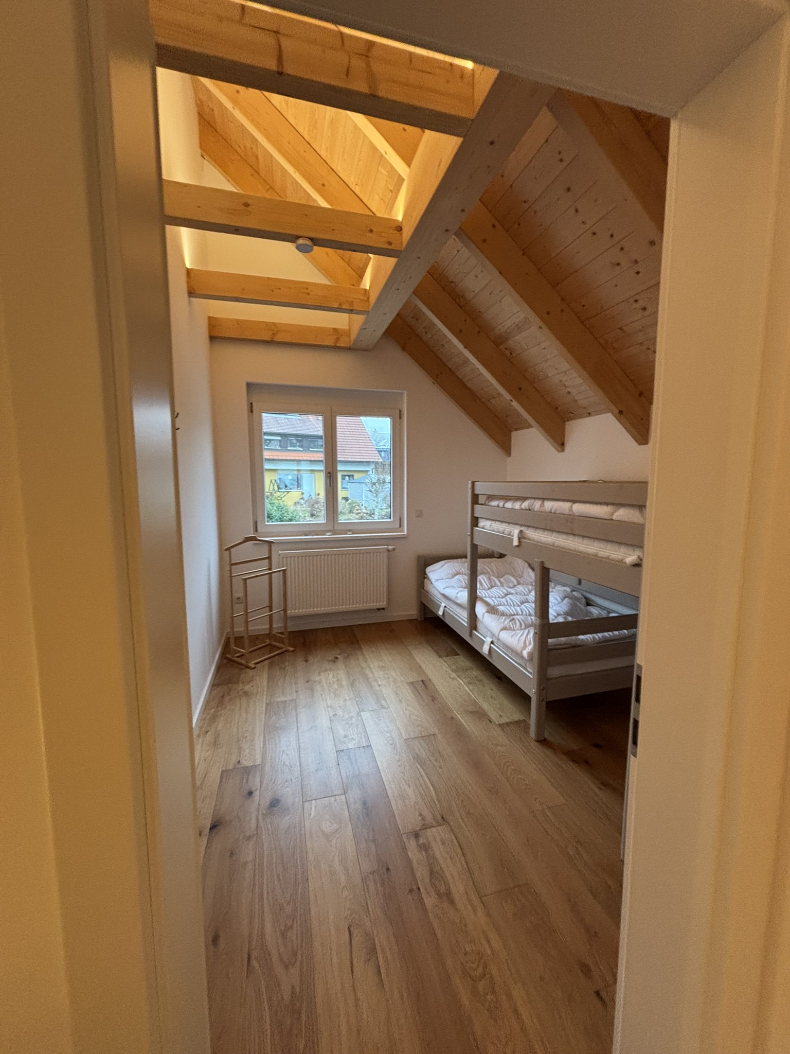 Unser Haus besticht durch eine offene Holzbauweise, die eine warme und einladende Atmosphäre schafft. Der gemütliche Holzofen im Wohnzimmer lädt zu entspannenden Abenden ein, während die Sauna Ihnen wohltuende Erholung bietet.